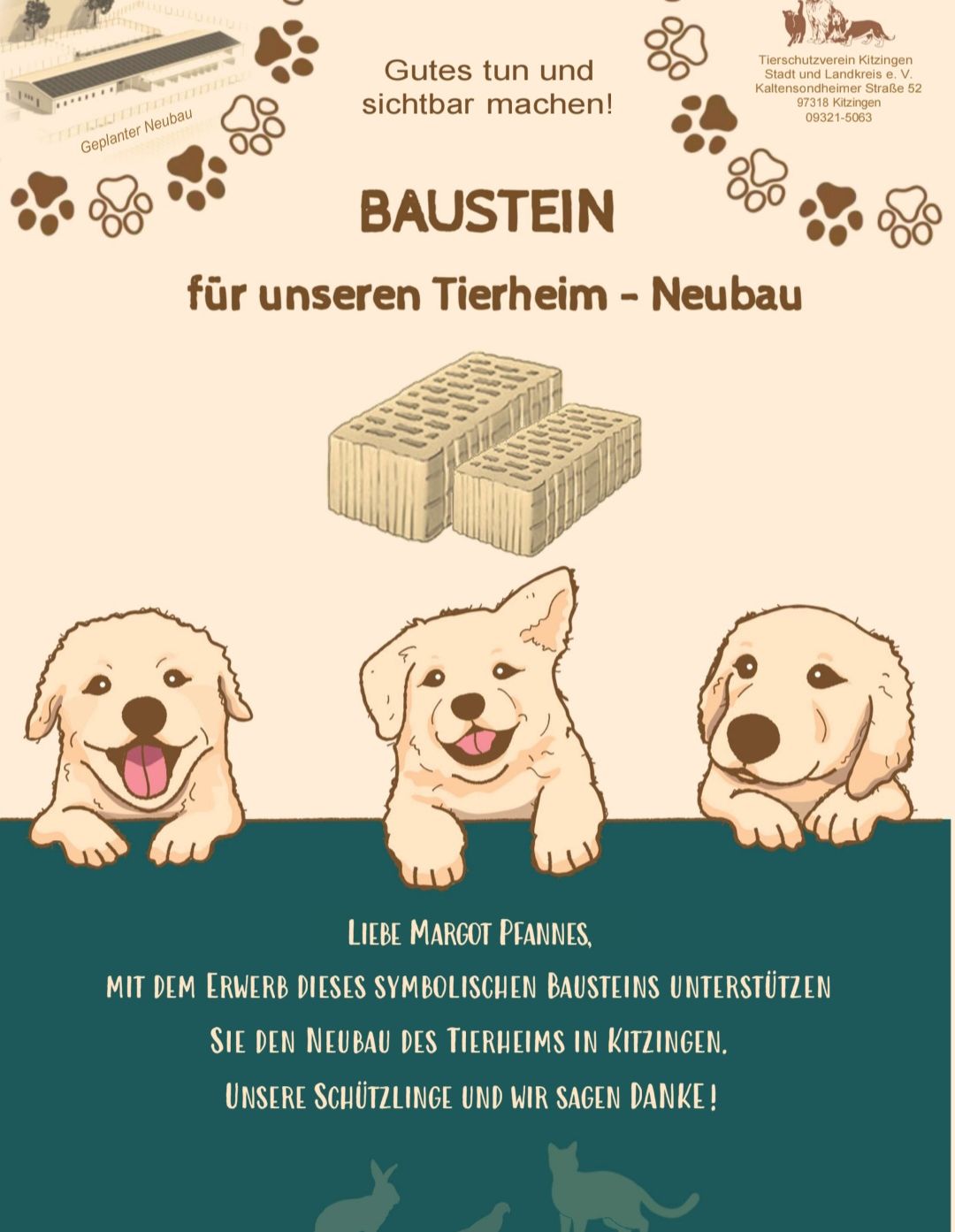 Gemeinsam bewegt: Ein Teil Eurer Teilnahmegebühr 2024 ging ans Tierheim Kitzingen. Gemeinsam Gutes getan! Vielen Dank!!